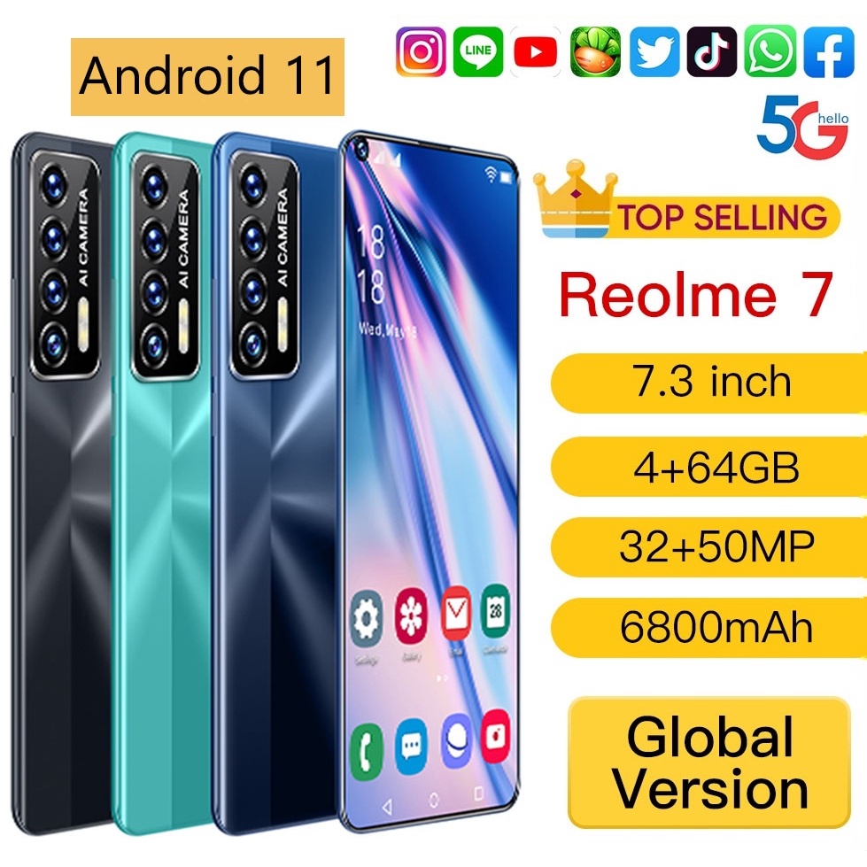 Reolme7 16 512gb Dual Sim Dual Standby Smartphone 7 3 Inch Mobile Phone Core Face Id Original Android 11 0 Handphone Android Phone Shopee Singapore